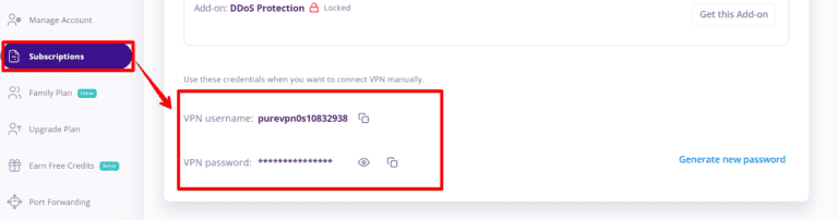 - 找到您的 PureVPN 凭据以进行手动配置。