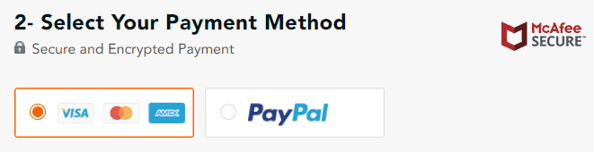 接下来,选择您的付款方式并输入您的详细信息以完成购买。 PureVPN 接受 PayPal 和信用卡。