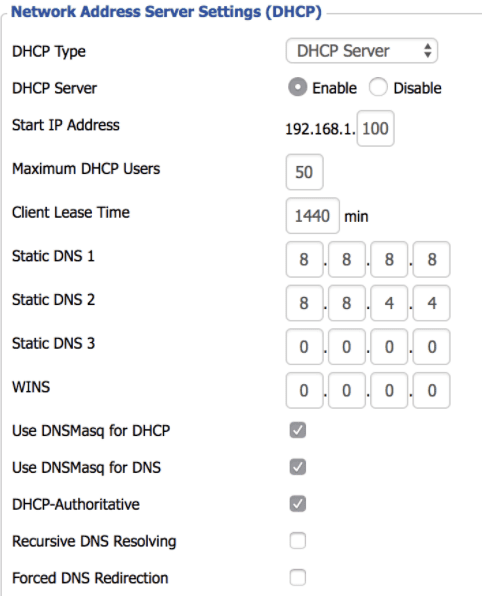 3. 下网络地址服务器设置 (DHCP),输入以下内容: