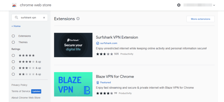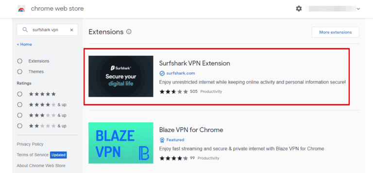 您还可以添加 Surfshark Chrome 扩展程序来保护您的数据并在使用 Google Chrome 浏览器时保持匿名。