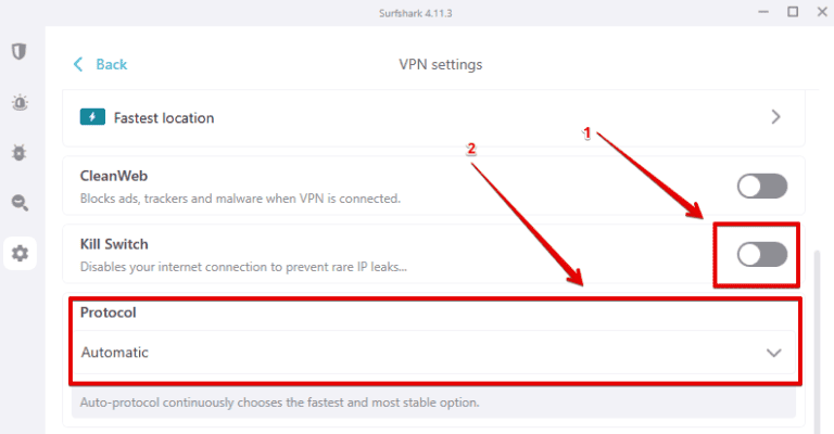 Surfshark 提供终止开关功能,可在 VPN 连接断开时立即切断 Chromebook 的互联网连接。