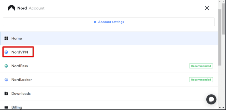 - 登录您的NordVPN 在线帐户通过浏览器。