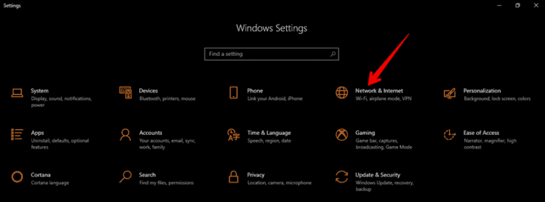 - 在您的电脑上,打开设置并点击网络和互联网。