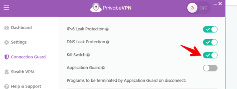 - 前往高级视图, 然后连接卫士,然后打开终止开关。