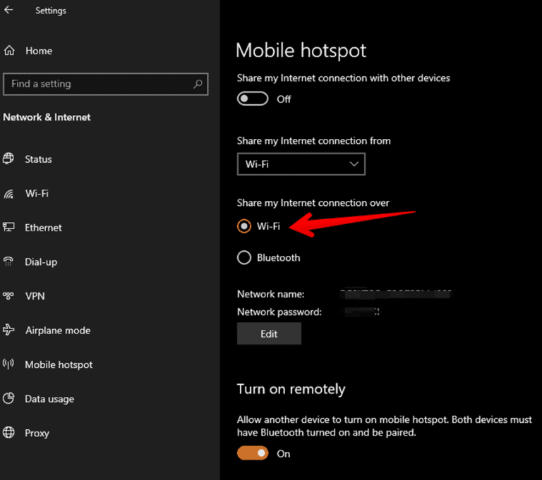 - 在下面 ”分享我的互联网连接,“ 选择 ”无线上网”。