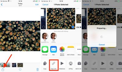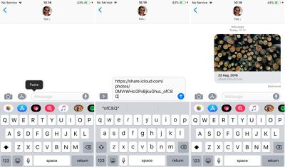 如果您通过“消息”共享链接,并且收件人使用的是 iOS 设备,他们将看到共享照片的可点击缩略图。如果他们使用 Android 设备,他们只会看到 URL。