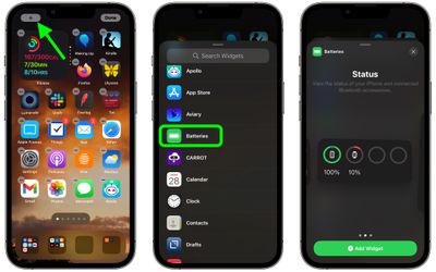 如果您希望能够在解锁时在“主屏幕”上查看 iPhone 的电池百分比,请向其中添加电池小部件。