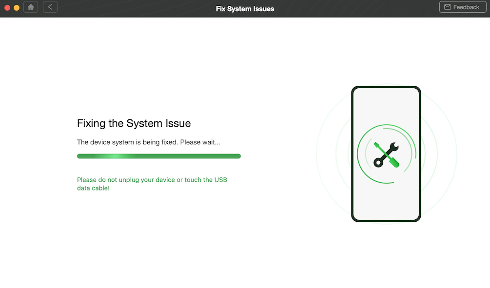 步骤4.然后DroidKit将开始修复系统问题。等待几分钟,直至该过程完成。
