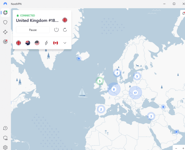- 启动 NordVPN 应用程序,登录并连接到您的NordVPN 首选服务器。在这种情况下,我选择了英国。