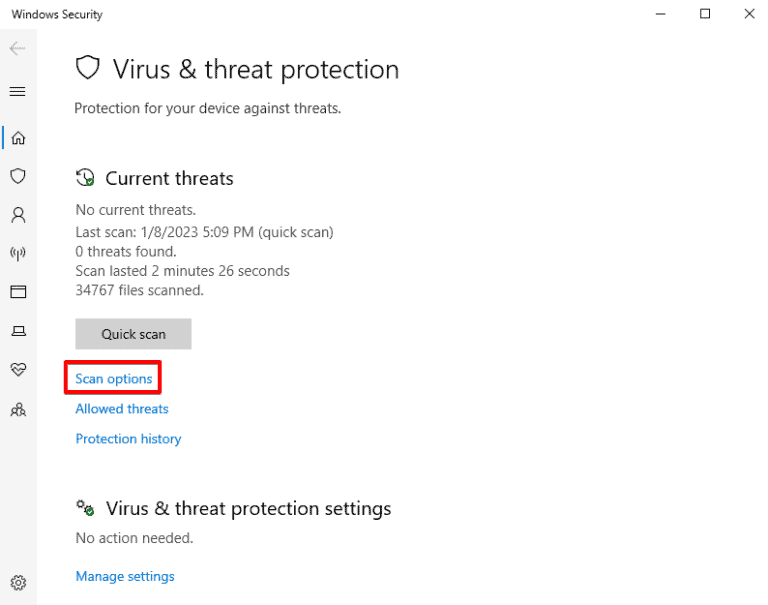 - 选择 ”扫描选项”。