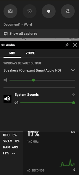 - 如果您没有在游戏栏屏幕上观看“捕获”窗口,请单击屏幕上部工具栏中的“小部件”按钮,然后选择“捕获”。