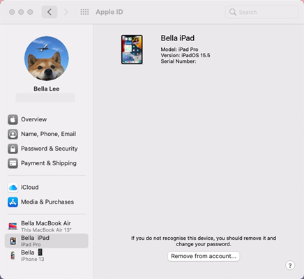步骤2。在左栏中,找到并单击您的 iPad,然后单击从帐户中删除。