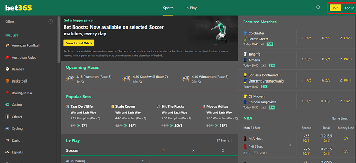 - 使用首选的充值方式为您的 Bet365 账户充值。