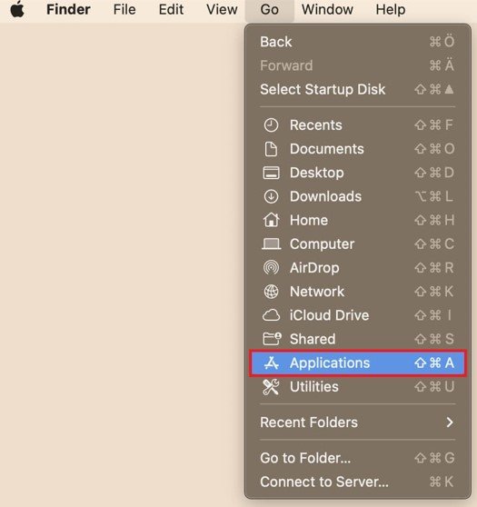 Finder > 前往 > 应用程序
