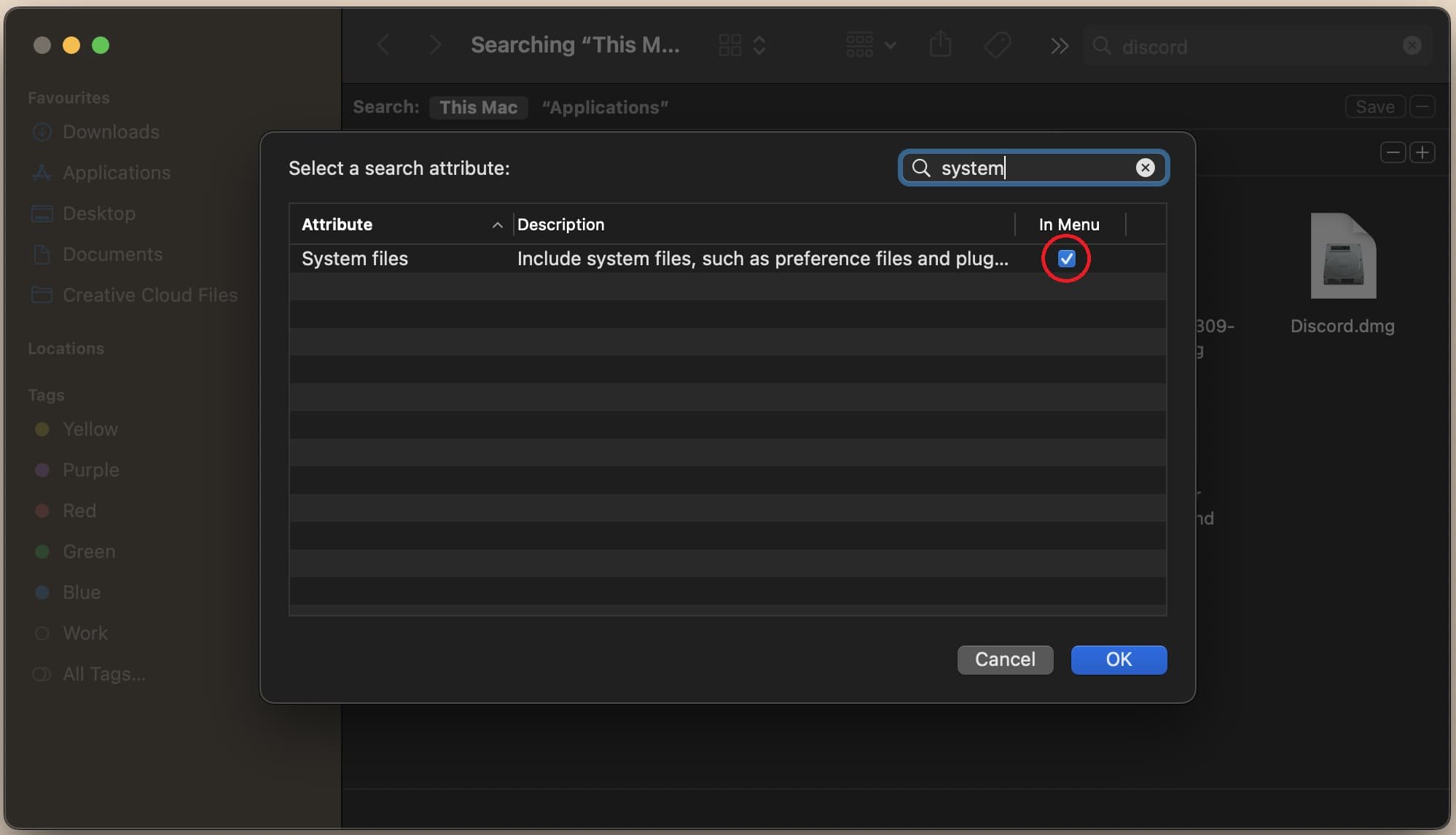 要查找更多应用程序文件,请单击查找器窗口右上角的加号图标。确保第一个选项设置为其他,让您检查系统文件并将其添加到上一个菜单中。
