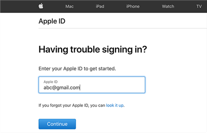 步骤 2. 输入您用于 Apple ID 的电子邮件地址,然后单击“继续”按钮。
