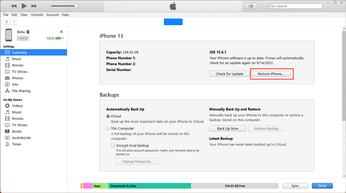 方法 1. 使用 iTunes 解锁 iPhone[支持 iTunes 备份]