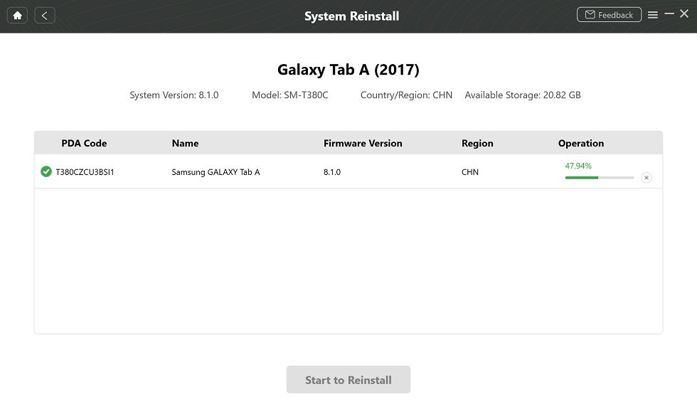 步骤 4. 选择并下载固件版本,然后单击开始重新安装。