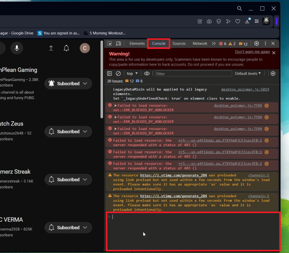 小心地将下面提供的脚本粘贴到控制台中。该脚本将自动执行取消订阅频道的过程。