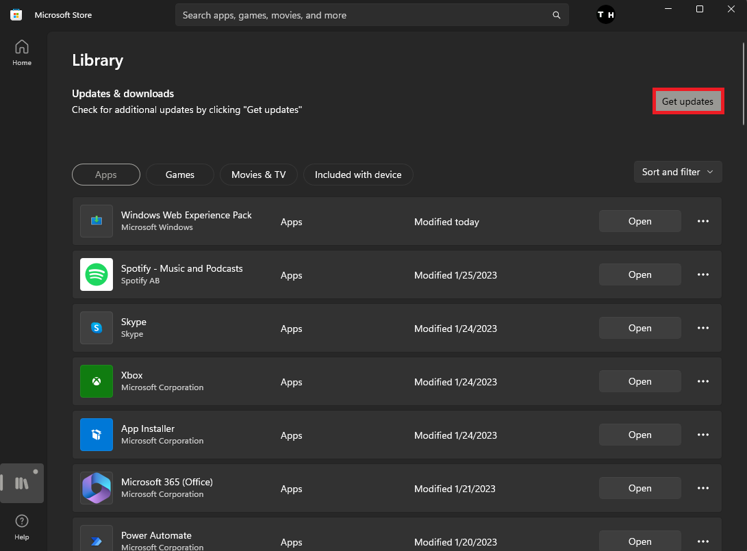 如果您喜欢使用Roblox的Microsoft Store版本,请打开Microsoft Store应用程序并导航到您的库。您将看到Windows PC上已经安装的应用程序和游戏列表。单击“获取更新”时,您的PC将下载任何可用的更新,包括Roblox游戏更新。