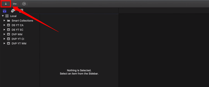 步骤1。打开 Final Cut Pro 并单击左上角的向下箭头导入视频。