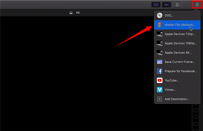 步骤 6。单击右上角的“共享”图标,然后从列表中选择“主文件”。