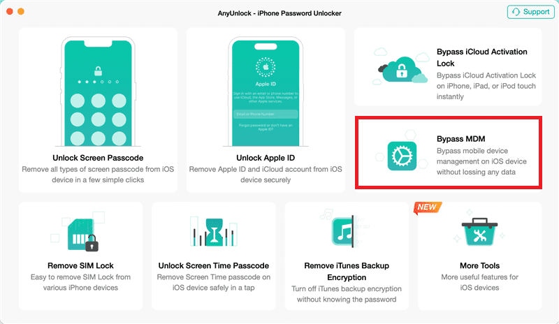如果仍然没有“跳过MDM锁定”功能,请尝试使用用于绕过MDM锁的其他工具。一些最好的选择包括Anyunlock。它易于使用并且运行良好。