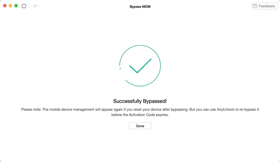 完成后,您的iPhone/iPad将不再具有MDM限制。然后,您可以自由使用设备。