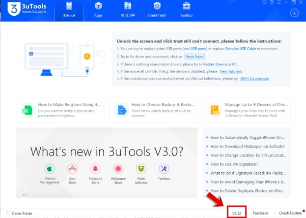 步骤1:首先,从系统上的官方网站下载3Utools软件。安装后,启动它。
