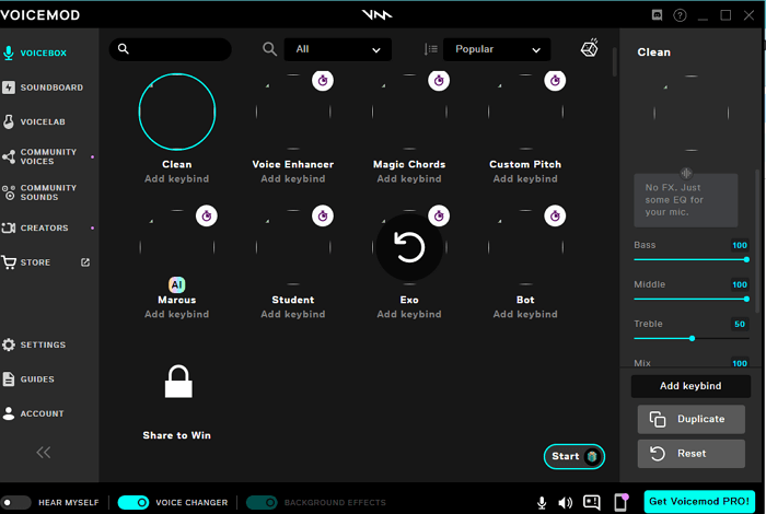 它适用于游戏、聊天,甚至视频通话。最好的部分是它非常易于使用。只需选择一个声音,就可以开始了! VoiceMod 是玩游戏、与朋友聊天或娱乐的绝佳选择。