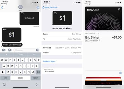 除了运行 iOS 11.2 或更高版本的 iPhone 和 iPad 之外,Apple Cash 还可以在运行 watchOS 4.2 或更高版本的设备上的 Apple Watch 上使用。从 Apple Watch 汇款遵循与 iPhone 相同的一般流程,通过“消息”应用程序进行和接收付款。