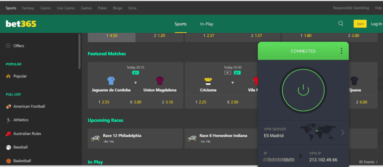 私人互联网接入使您能够安全地对冲您喜欢的运动队的赌注并从任何地方访问 Bet365,即使在受到限制的国家。