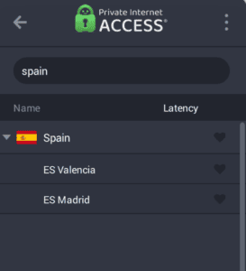 - 搜索您的首选服务器位置并连接到 Bet365 法律允许的区域。我连接到西班牙-马德里服务器。