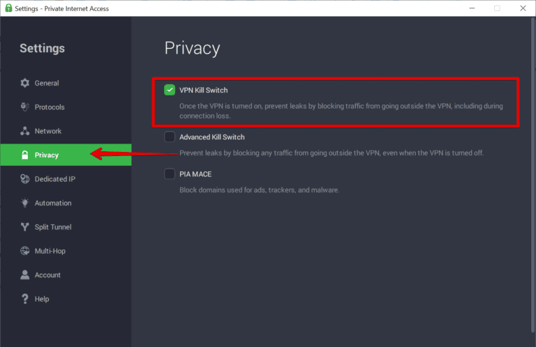 - 激活终止开关以确保即使您遇到连接中断,您的真实 IP 地址仍然隐藏。