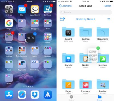 您可以使用多重拖动功能将多个应用程序从主屏幕拖动到一个文件夹或另一屏幕上,并且可以在“文件”应用程序中的不同文件夹之间拖放文件。除了这两个用例之外,iPhone 目前还没有其他可用的拖放功能。