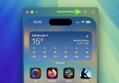 您可以使用 Mac 的键盘和触控板或鼠标与 iPhone 进行交互。单击并拖动进行滚动,单击进行点击,并在主屏幕上使用 Command + H 等键盘快捷键。要调整镜像窗口,请将光标悬停在 iPhone 屏幕上方。这将显示用于访问主屏幕和应用程序切换器的控件。您还可以使用 Command 和 +/- 键调整镜像窗口的大小。