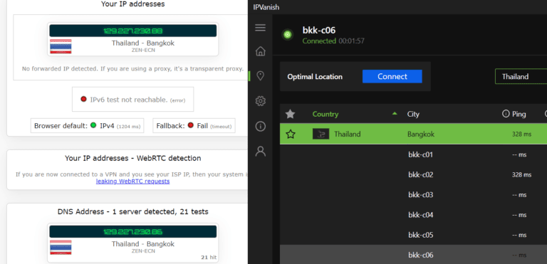 - 测试 IP/DNS 泄漏确认您分配的是泰国 IP 地址,而不是您的真实 IP。