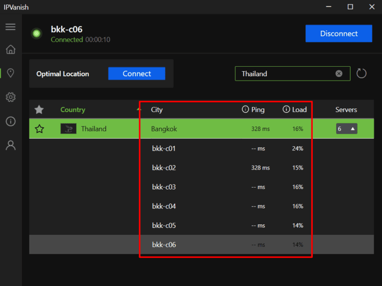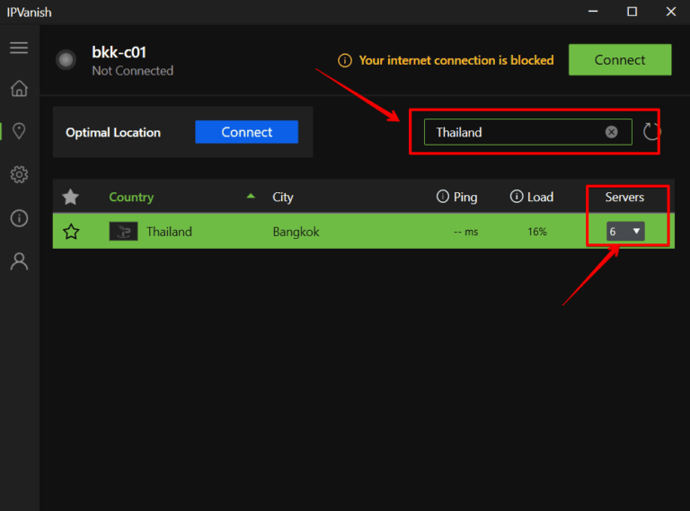 - 点击 ”连接“ 旁边 ”最佳位置”。它连接到最快的可用 IPVanish 服务器位置,更适合在泰国进行一流的下载、游戏和安全互联网浏览。