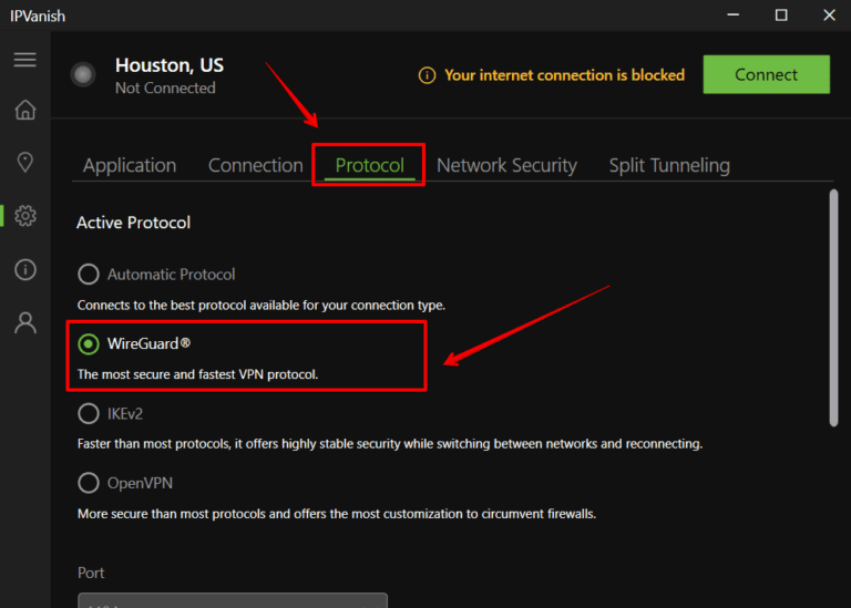 - 转到“协议,”然后选择“线卫” 在泰国通过 VPN 实现快速稳定的内容解锁和一般互联网体验。