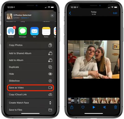 - 轻敲另存为视频。