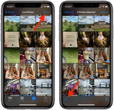 - 点击几张“实时照片”,每个缩略图的角落都会出现一个蓝色勾号。
