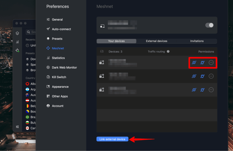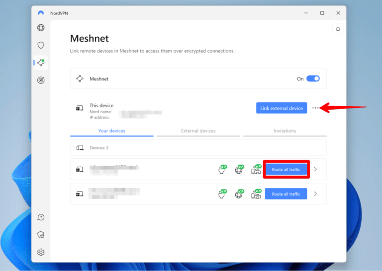 Meshnet 允许您添加10 台设备你拥有和50 个外部设备您可以随时配对。使用同一 NordVPN 帐户登录的所有设备都会自动链接。