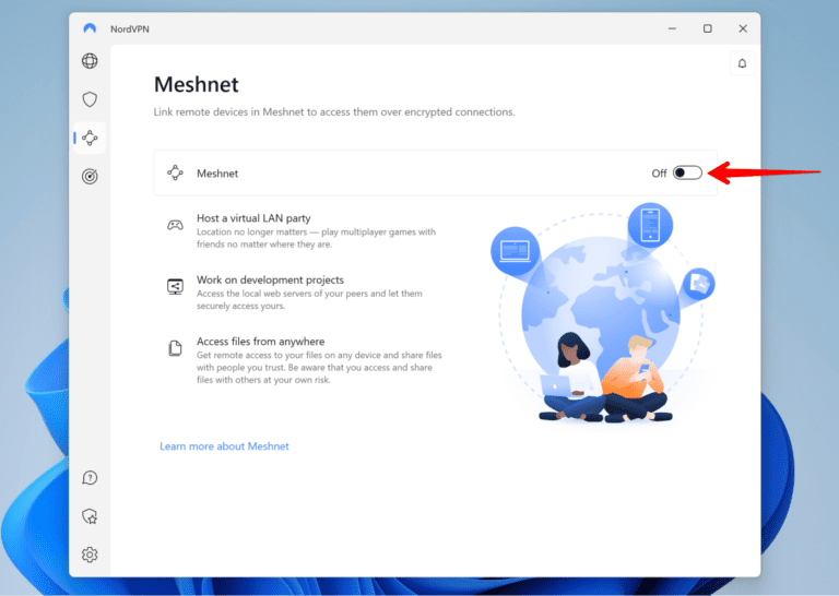 在 Windows 上设置 NordVPN Meshnet
