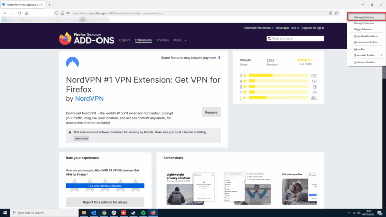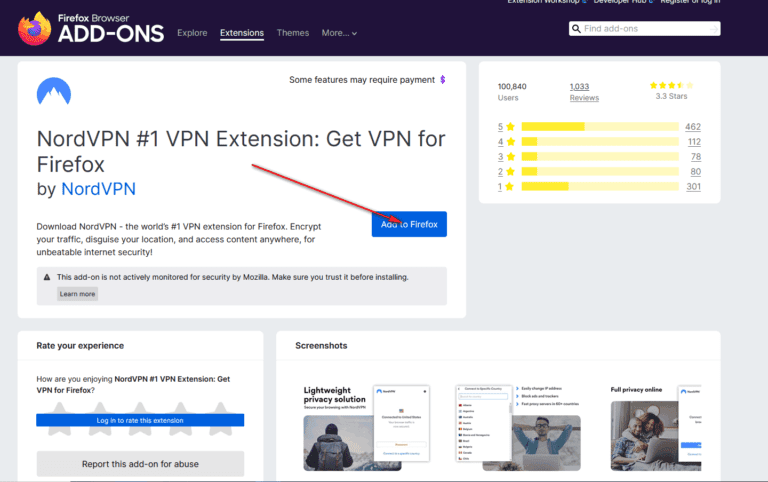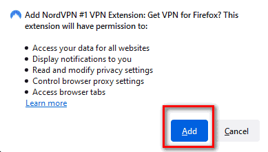 - 从该下载并安装Firefox NordVPN浏览器附加组件官方NORDVPN下载页面或来自Mozilla网络商店。