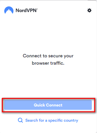 - 现在,单击浏览器中的NordVPN图标,然后选择快速连接。