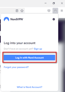 - 现在,单击浏览器顶部右上方的NORDVPN图标,然后选择使用NORD帐户登录。