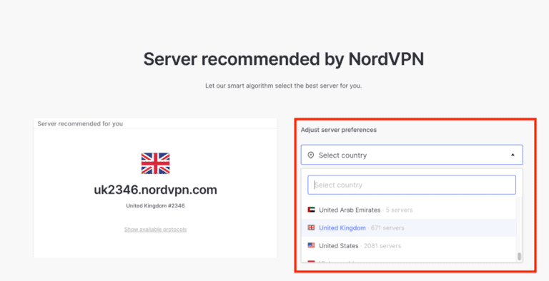 - 使用“选择首选服务器位置选择国家“ 下拉式菜单。