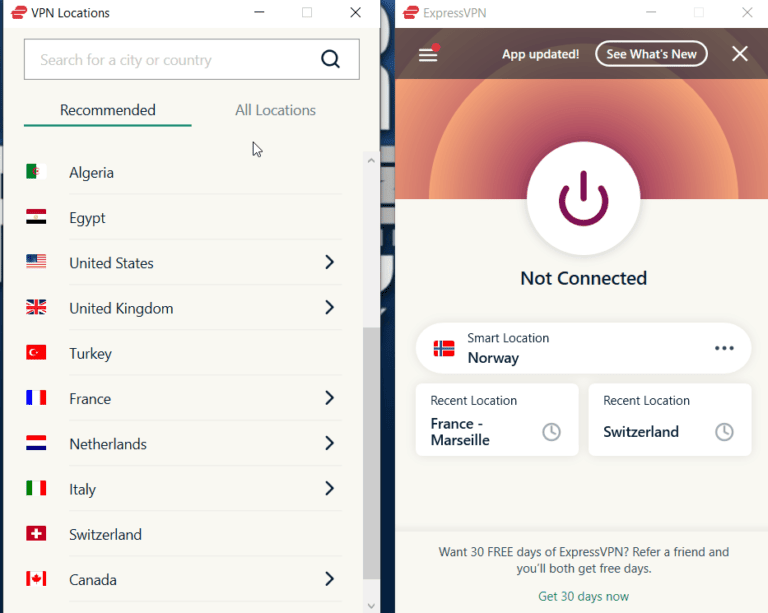 在任何一种情况下,请断开与 ExpressVPN 服务器的连接并连接到另一台服务器。我建议使用美国、加拿大、澳大利亚和欧洲大部分地区的服务器来解锁/访问任何地方的 Ome TV。然而,远离埃及服务器因为它很可能无法解锁 Ome TV。