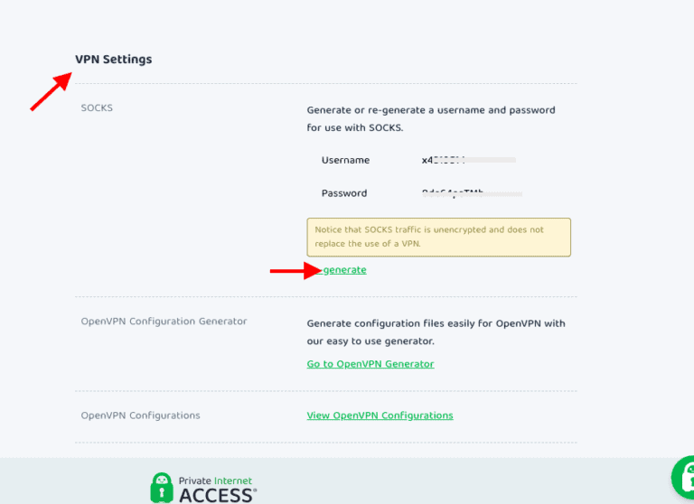 - 点击 ”产生” 获取您的 SOCKS5 用户名和密码。