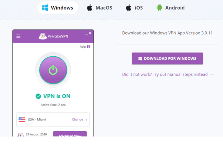- 在 Windows 上下载并安装 PrivateVPN 应用程序。